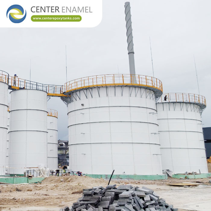 সেন্টার এনামেল এফবিই ট্যাঙ্কগুলি গন্ধ এবং বায়োগ্যাস পরিচালনা করতে বিশেষ ছাদ ব্যবস্থার সাথে নির্বিঘ্নে সংহত করে: